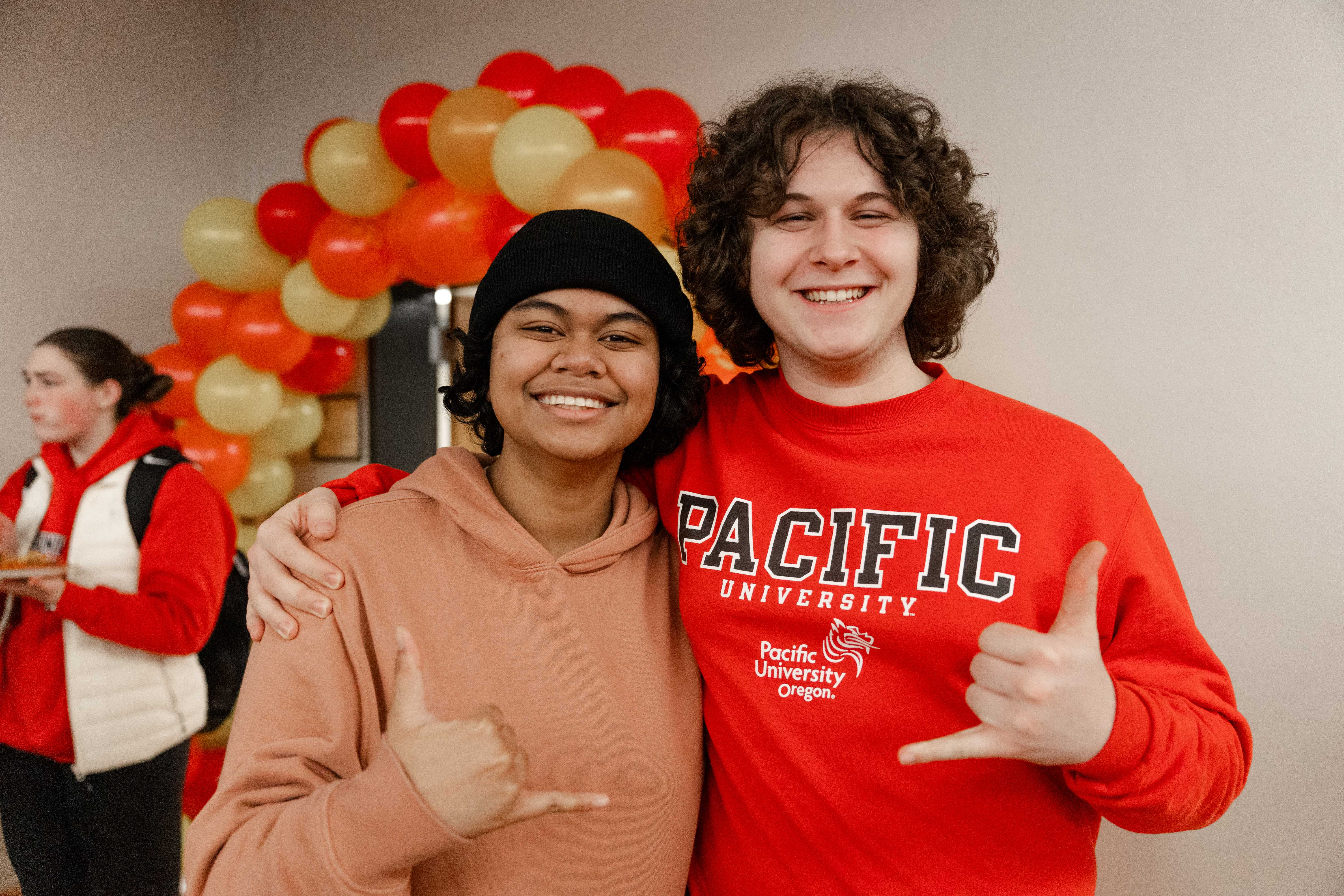 Two students pose for a photo during a Lunar New Year celebration.