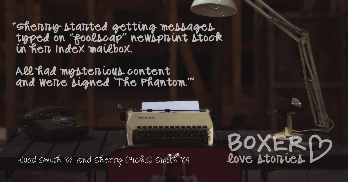 Early in the semester, Sherry started getting messages typed on “foolscap” newsprint stock in her Index mailbox. All had mysterious content and were signed “The Phantom.”