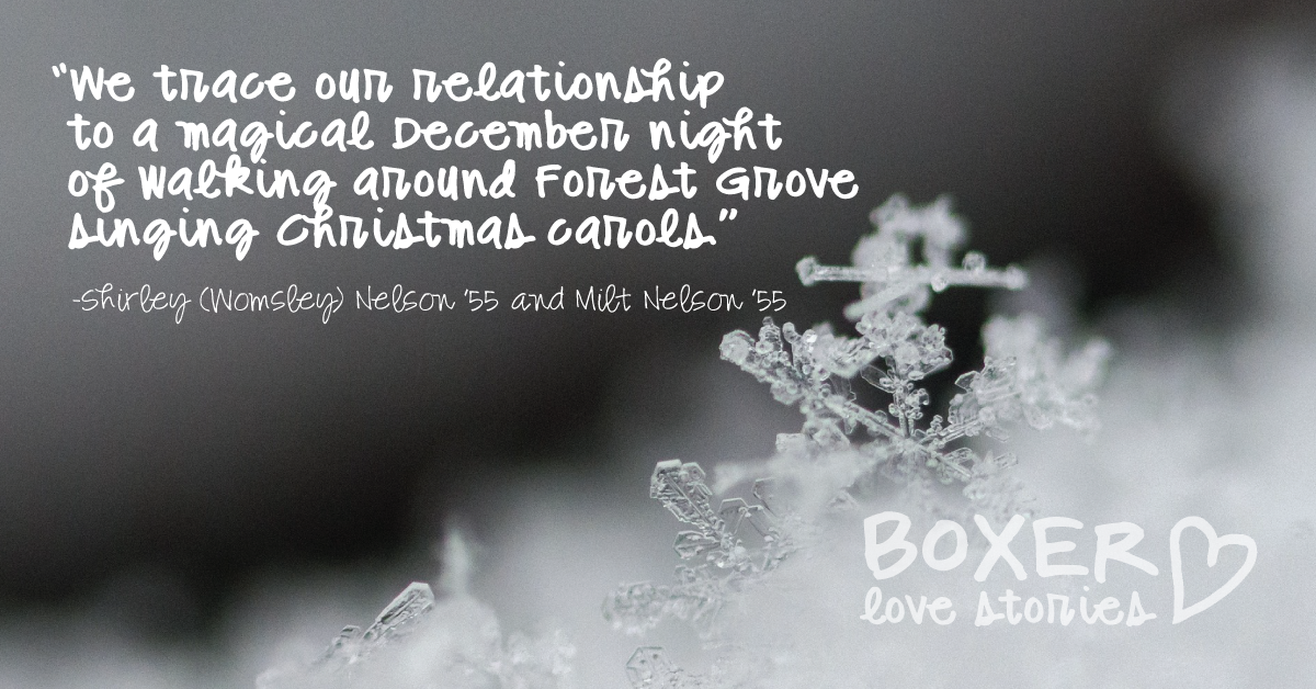 “We trace our relationship to a magical December night of walking around Forest Grove singing Christmas carols with other students,” said Shirley.